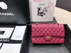 香奈兒口蓋包 Classic Flap Bag 挑艳红色 魚子醬小牛皮菱格鏈條包