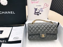 香奈兒女包 Classic Flap Bag 雾霾蓝羊皮菱格鏈條經典口蓋包 淺金色金屬