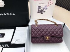 香奈兒包包官網女包 CHANEL 22 中號手袋 紫色 亮面小牛皮與金色金屬