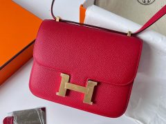 愛馬仕最有名的兩款包 Hermès Constance 1-18 Epsom 鏡子款 Rose casaque 國旗紅金扣