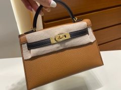 Hermes Kelly Sellier 20 Chevre CK41 Havane哈瓦那咖啡色内拼柠檬黄磨砂银扣