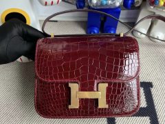 Hermès Constance 18cm 57 波爾多酒紅 Bordeaux 亮面美洲鱷魚 Shiny Alligator Crocodile 金扣 全手工蜜蠟線縫制 All hand sewing in stock 2022年 Stamp U