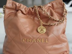 CHANEL 22 小號手袋 焦糖色亮面小牛皮、金色金屬與亮漆面金屬