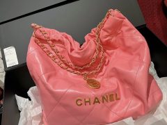 香奈兒包包官網訂購 CHANEL 22 小號手袋 珊瑚粉 亮面小牛皮與金色金屬