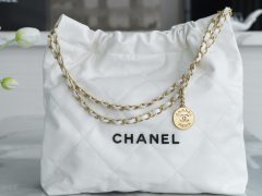 香奈兒包包官網最新款 CHANEL 22 小號手袋 白色 亮面小牛皮與金色金屬