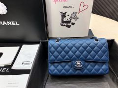 香奈兒口蓋包 Classic Flap Bag 海軍藍色 HAAS魚子醬小牛皮菱格鏈條包 金色金屬
