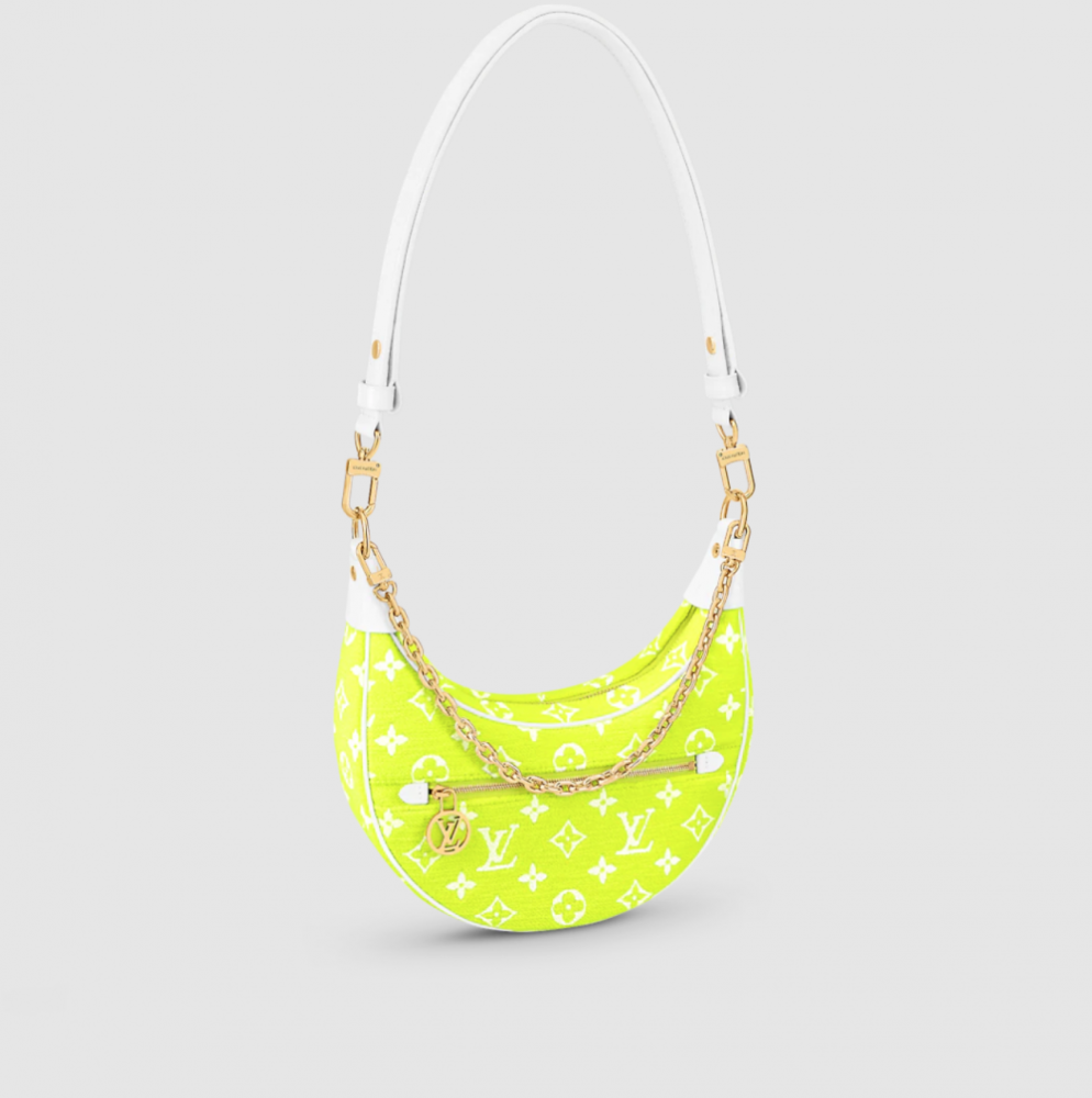 相當熱門的Loop,在初次登場時就因爲它的半月造型成爲吸引到衆人的目光。這次不僅也將材質換成了Monogram提花絲絨之外,更是特別換上螢光色的配色,讓它閃耀的如天上的月亮。
