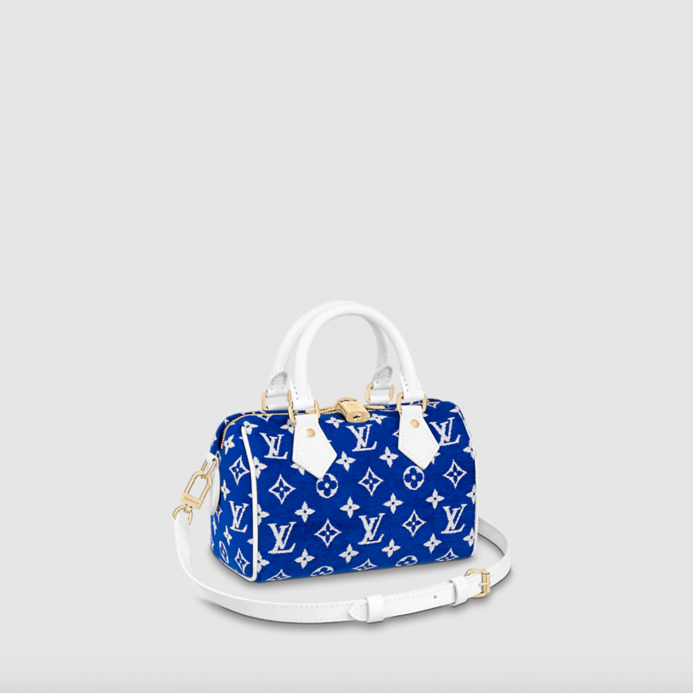 許多人心目中的經典手袋,這次Louis Vuitton將Speedy Bandouliére 20撒上了典雅的海軍藍。並選用本次主打的Monogram提花絲絨,以及具有儀式感的雙拉煉設計,相當迷人。尺寸爲20.5 x 13.5 x 12cm。此外還附有挂鎖帶給妳滿滿的安全感。