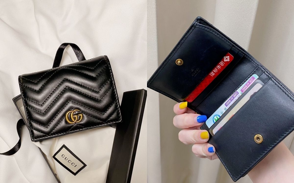 五顔六色的皮夾固然缤紛亮眼,但身爲黑色主義者,喜歡簡約、耐看又實用的朋友,可以跟我壹樣考慮這款「GUCCI MARMONT」系列短夾,經典的雙G小標志以複古金色搭配山形皮革紋,細致的黑色小牛皮讓整體簡約中不失造型感,還有點蓬蓬的弧度非常可愛,對折的短夾設計,容量和配置非常齊全!卡夾層、有拉煉的零錢袋,還有鈔票夾層,可以說是麻雀雖小,五髒俱全的壹款短夾!質感和手感滿分~真要說唯壹小小缺點,就是鈔票夾層稍微短(畢竟原生設計是放歐元紙鈔的,編輯實測:百元台幣紙鈔大概可以放15張左右的厚度~再多就有點小擁擠了)。
