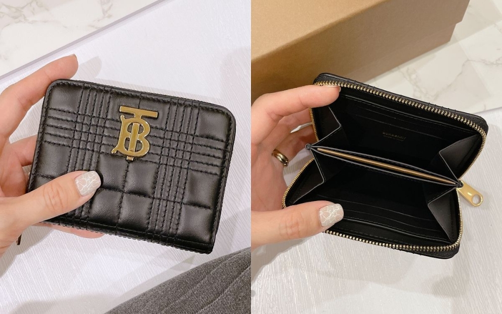 BURBERRY 近期被許多女星所喜愛的Lola包,也推出造型精巧又實用的拉煉短夾,卡片收納豐富、兩個夾層分別可以放置鈔票與零錢,最棒的是價格不到兩萬就能擁有,經典黑色百看不膩眼。