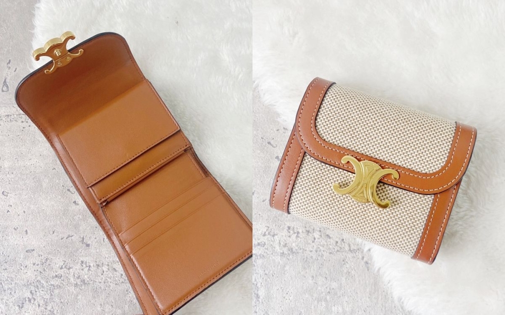 天天都會使用的錢包,絕對是入手精品的不二人選!這款CELINE TRIOMPHE短夾壹推出就成爲櫃上的熱賣款,最吸引人的就是皮夾上充滿代表性的金屬凱旋門標志,搭配上米白的帆布材質與小牛皮飾邊,打造出摩登複古的風格,內裏的零錢袋是獨立設計因此在放零錢上十分方便,卡夾層的容量也不少,想挑選短夾的女孩可以鎖定這系列哦!