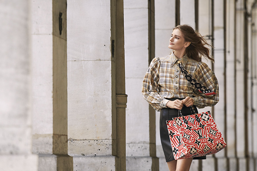 LV 介绍了全新 Crafty 系列,系列主打 Monogram Giant 图案,设计灵感来自涂鸦艺术和新表现主义。其中包括多款以 Monogram 帆布制成的包袋,纹样由两部分组成,分别是设计师从品牌档藏馆里选取的一款纹样以及黑色 Monogram Giant 图案,配色有米色搭配红色、米色搭配焦糖色两种选择,包型则有 Onthego 托特手袋、NéoNoé 水桶包和 Boite Chapeau Souple 圆饼包。