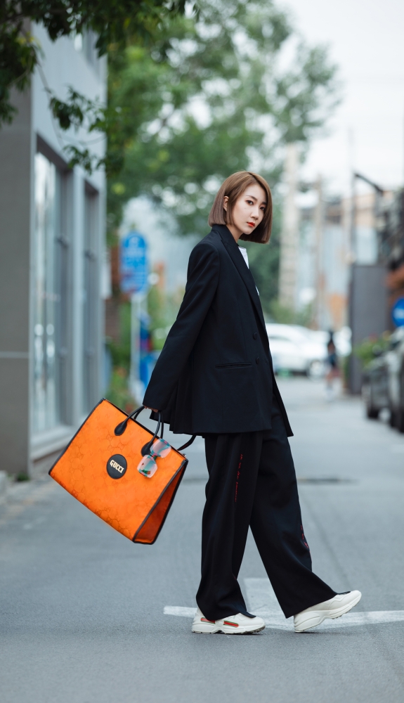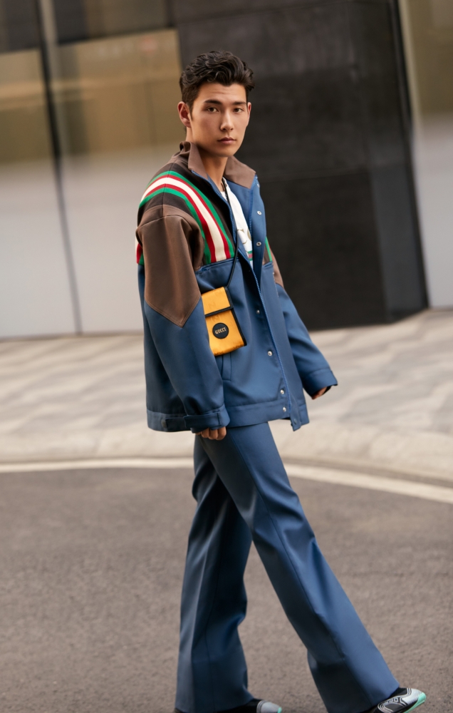 多款成衣单品则以橙色和黑色为主色调,同时推出了适合男女穿着的较小尺码,体现品牌独特的中性风格。其中包括连帽或无帽无内衬运动夹克、踩脚运动裤、以及配有格纹设计绗缝内衬运动马甲(仅有黑色款式)。这些单品均由ECONYL®再生锦纶纱线制成,配有循环涤纶拉链、标牌与抽绳(部分运动裤配有机棉抽绳)。此外,Gucci Off The Grid系列还推出多款日本限定的中性风格单品,包括旅行箱包、钱夹、成衣与帽子;延续该系列造型设计,而配色则精选明亮的蓝色。