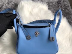 香港愛馬仕 Hermès Lindy 26 Clemence T0 Blue Brume 雾蓝色 Silver Hardware