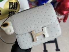 愛馬仕中國官網小紅書 Hermès Constance 18cm Ostrich 進口南非KK鴕鳥皮 8U Blue Glacier 冰川藍 金扣 GHW 全手工蜜蠟線縫製
