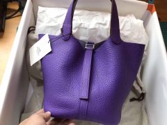 愛馬仕Hermes 鎖頭包 Picotin Lock 18cm 菜篮子 7C Cobalt湖水蓝 比较低调的蓝色 气质美人品相真好。愛馬仕最不同的包袋鎖頭包(Picotin Lock)又名菜籃子,采用簡潔大方的桶型設計,非常具有立體感,長得有點像中國80年代的菜籃子,因此被網友親切地稱為菜籃包。選用Taurillon小牛皮制成,柔軟,耐磨,防水性能非常的好。