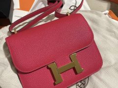 愛馬仕最有名的兩款包 Hermès Constance 1-18 Epsom 鏡子款 Rose casaque 國旗紅金扣