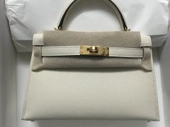 新加坡愛馬仕 Hermes Mini Kelly II 2代 Epsom CK10 Craie 奶昔白 銀色 金屬 全手工蜜蠟線縫製