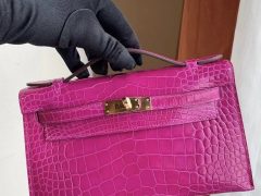 愛馬仕 Hermes Minikelly pochette 22cm 霧面方塊 美洲鱷魚 Matte Alligator Crocodile 銀扣 全手工蜜蠟線縫製 現貨一只