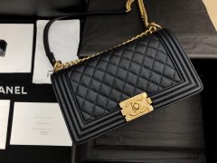 香奈兒Chanel GABRIELLE流浪包 復古小牛皮、銀色與金色金屬 黑色 尺寸:15 x 20 x 8 cm 尺寸:21 x 28 x 10 cm 參考: A93824 Y83824 94305