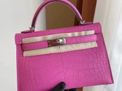愛馬仕迷你凱莉包價格 Hermes Kelly Mini II 2代 U5 Rose Lipstick 唇膏粉 Chevre Mysore 山羊皮 銀扣 全手工蜜蠟線縫製