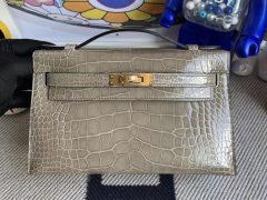 愛馬仕官方網站旗艦店 Hermès Kelly Pochette Matte Alligator Crocodile 8L Beton