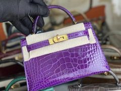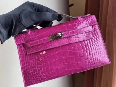 Hermes Kelly Mini Ⅱ 19cm 亮面美洲鱷魚 Shiny alligator crocodile CK14 Beige 杏色 ,6Q 翡翠綠 Vert Emeraude 全手工縫製蜜蠟線縫製 金扣 in stock