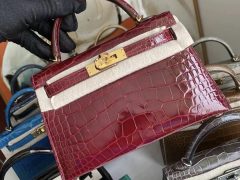 Hermes Kelly Mini Ⅱ 19cm 亮面美洲鱷魚 Shiny alligator crocodile CK17 Ficelle 煙草色 淡灰褐色 ,6H Olive green 橄欖綠 全手工縫製蜜蠟線縫製 金扣 in stock