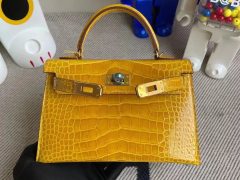 Hermes Kelly Sellier 20 Chevre CK41 Havane哈瓦那咖啡色内拼柠檬黄磨砂银扣