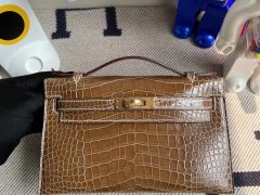 愛馬仕所有包款式大全 Hermès Kelly Pochette Alligator Crocodile Ficelle 煙草色