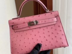 愛馬仕迷你凱莉包價格 Hermes MiniKelly Pochette 22cm Swift 0D Rose Mexico 墨西哥粉 玫瑰墨西哥 全手工縫製 银扣