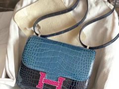 Saudi Arabia Hermes Constance 19cm 亮面方塊 美洲鱷魚 73 Blue Sapphire 寶石藍 7F Blue Paon 孔雀藍