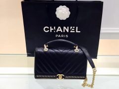 香奈兒 handbag 口蓋包配以手柄 黑色小羊皮 配鏈條金色金屬