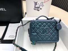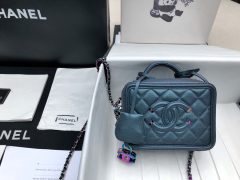 香奈兒中號相機包 藏青色 顆粒小牛皮 化妝包Vanity Case bag幻彩色金屬