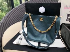 2018香奈兒新款嬉皮包 劉雯同款 藍色小牛皮、羅緞與金色金屬
