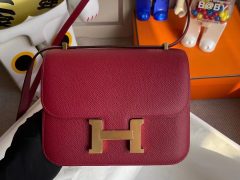 愛馬仕最有名的兩款包 Hermès Constance 1-18 Epsom 鏡子款 Rose casaque 國旗紅金扣