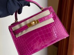 臺灣臺中市東區 臺中市豐原區 愛馬仕迷你凱莉二代價格 Hermes Mini kelly II N5 加侖紫 Cassis 亮面美洲鱷魚 Shiny alligator crocodile 全手工蜜蠟線縫 銀扣