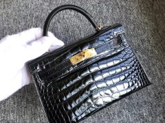 臺灣臺中市清水區 Hermes MiniKelly Pochette 22cm Shiny Alligator Crocodile 亮面方块 美洲供珠鳄鱼 CK89黑色 金扣 银扣
