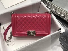 小香Le boy bag 25cm 漆皮桃紅色、進口漆牛皮配小羊皮單肩鏈條包