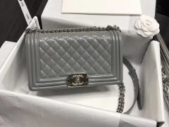 小香Le boy bag 25cm 漆皮銀灰色、進口漆牛皮配小羊皮單肩鏈條包