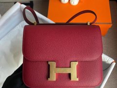 愛馬仕最有名的兩款包 Hermès Constance 1-18 Epsom 鏡子款 Rose casaque 國旗紅金扣