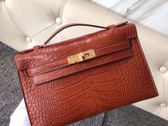 愛馬仕所有包款式大全 Hermès Kelly Pochette Alligator Crocodile Ficelle 煙草色