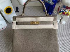 臺灣桃園市桃園區 愛馬仕女包什麽顏色最好賣 Hermes Kelly 25cm Togo CK18 Etoupe 大象灰 銀扣 Togo leather 全手工蜜蠟線縫製