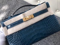 香港香港島中西區 2020年新刻印 Y刻 愛馬仕迷妳凱莉包價格 Hermes MiniKelly Pochette 亮面方塊 美洲鱷魚 Shiny alligator crocodile 7Q希臘藍 Blue Mykonos