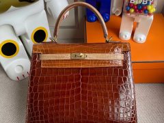 香港深水埗區美孚 Hermes Kelly 25cm 亮面尼羅鱷魚 Shiny nilo crocodile CC31 Miel 蜜糖棕 全手工蜜蠟線縫製 金扣