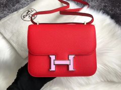 愛馬仕最有名的兩款包 Hermès Constance 1-18 Epsom 鏡子款 Rose casaque 國旗紅金扣