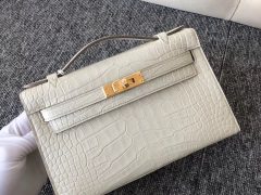 愛馬仕官方網站旗艦店 Hermès Kelly Pochette Matte Alligator Crocodile 8L Beton