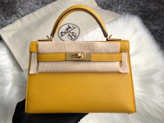 Hermes Kelly Sellier 20 Chevre CK41 Havane哈瓦那咖啡色内拼柠檬黄磨砂银扣