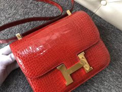 亮面倒V 澳洲灣鱷 Hermes Constance Elan 26cm 57 Bordeaux 波爾多酒紅