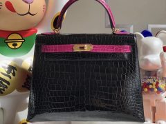 香港深水埗區石硤尾 Hermes Kelly 28cm CK67 Vert Fonce 祖母綠 亮面倒V 澳洲灣鱷 Shiny Porosus Crocodile 全手工蜜蠟線縫制 銀扣 原廠五金